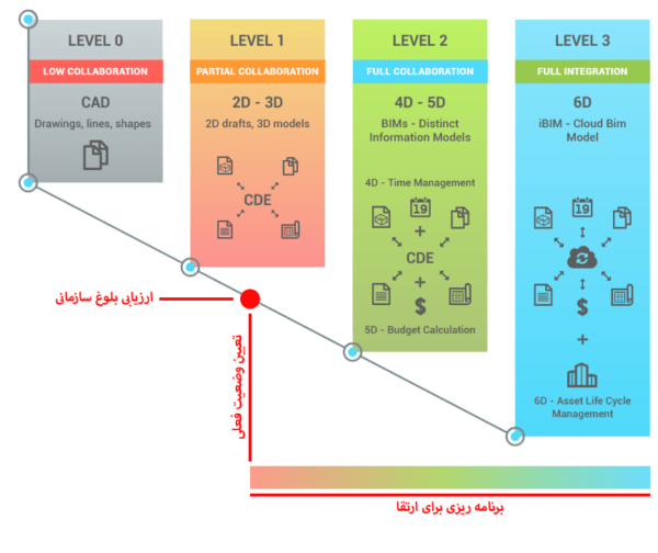 با توجه به رشد روزافزون استفاده از BIM در صنعت ساخت، ضرورت فاصله گرفتن از رویکردهای سنتی و حرکت به سمت BIM در بسیاری از سازمان ها احساس شده و اقداماتی نیز در این خصوص انجام گرفته است. باید توجه داشت که حرکت به سوی BIM تنها به معنی جایگزینی نرم افزارهایی چون AutoCAD با نرم افزارهایی چون Revit نیست. بلکه در حرکت به سوی BIM لازم است بسیاری از رویکردها و فرآیندهای کاری نیز تغییر کند. همچنین، لازم است تغییرات به صورت مرحله به مرحله و برنامه ریزی شده باشد تا نتایج مطلوب حاصل شود.